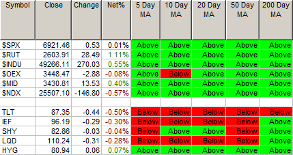 Moving Average Table: 97% of Equities are Positive, and 40% from 84% of Bonds are Positive.