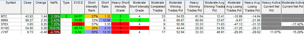 Insider Action: None see Insider Buying with dumb short selling. JYNT sees Insider Buying with smart short sellers. Above $100,000 in purchases with high shorts but no history: None