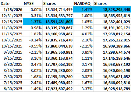- The latest Short Interest Data for NYSE and NASDAQ is out and NYSE was flat while NASDAQ rose 1.41%