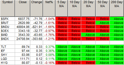 Moving Average Table: 30% from 77% of Equities are Positive, and 88% from 88% Bonds are Positive.