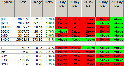 Moving Average Table: 36% from 47% of Equities are Positive, and 36% from 36% Bonds are Positive.