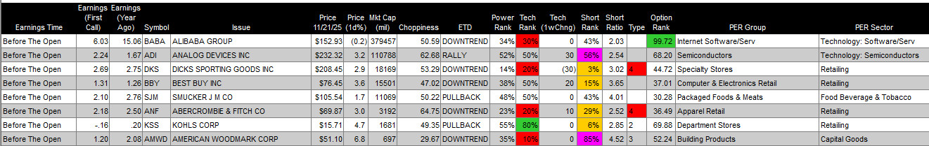 Upcoming Earnings Of Note: (Erlanger Chartroom Softwaresorted by market cap, highest to lowest with most visible names)