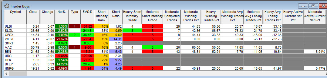 Insider Action: None see Insider Buying with dumb short selling. HNRG sees Insider Buying with smart short sellers. Above $100,000 in purchases with high shorts but no history: None of note.
