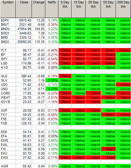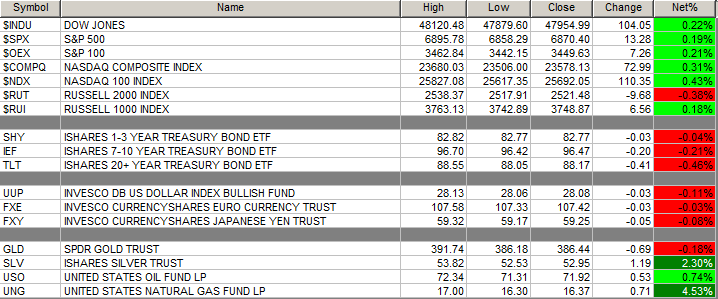- The S&P 500 finished Friday higher by 0.19% at 6870.40 from Thursday higher by 0.11% at 6857.12.