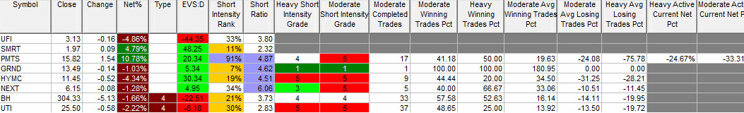 Insider Action: PMTS sees Insider Buying with dumb short selling. None see Insider Buying with smart short sellers. Above $100,000 in purchases with high shorts but no history: None