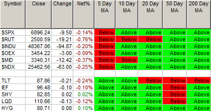 Moving Average Table: 70% from 74% of Equities Positive and 76% of Bonds are Positive.