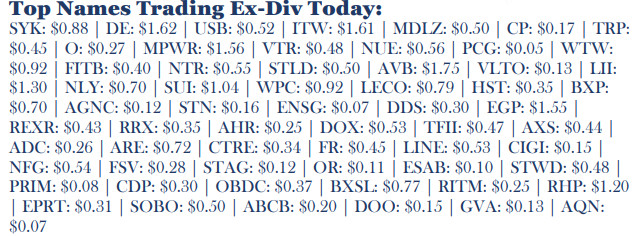 - Stocks Ex Div Today of note: