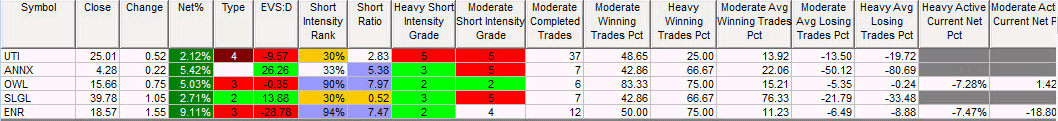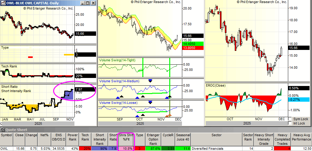 Insider Action: OWL ENR see Insider Buying with dumb short selling. None see Insider Buying with smart short sellers. Above $100,000 in purchases with high shorts but no history: None