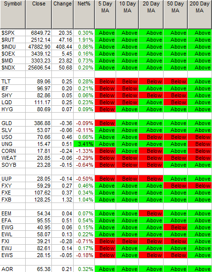 Moving Average Table: Commodities are struggling ex Gold and Silver.
