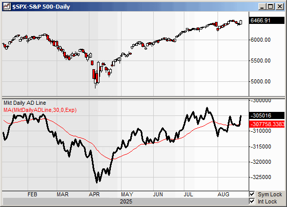Advance/Decline Daily Update: The A/D Line continues to weaken.