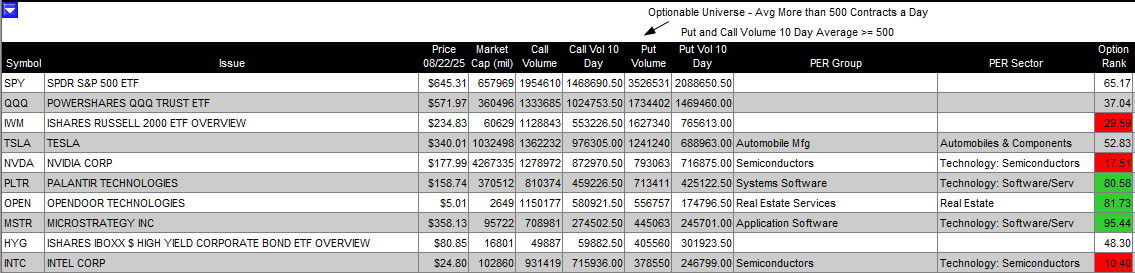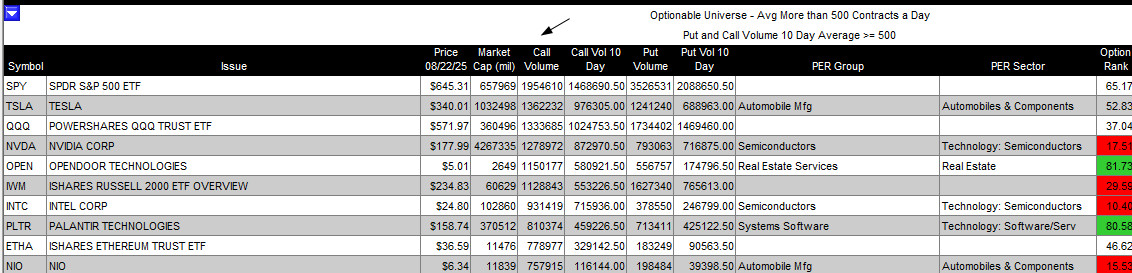 Options Activity: Calls and Puts Top Ten Names Sorted Volume. Highlighted names are new to the most active list.