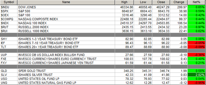 - Daily Positive Sectors: Utilities, Consumer Cyclical, Healthcare and Materials led the way higher.